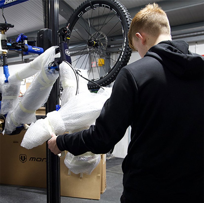 At MTB Monster we’re committed to lowering our impact on the environment and to help with this, our workshop often reuses sturdy boxes to that are in good condition to send new bikes out in.